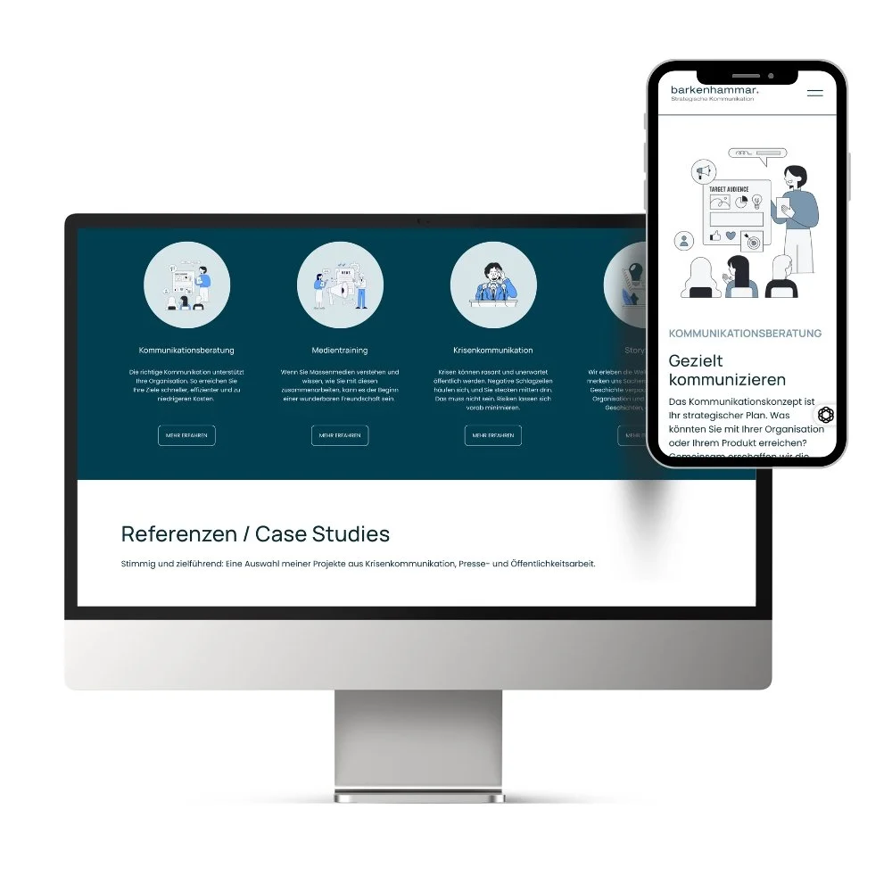 Barkenhammar Strategische Kommunikation steht für Beratung in den Bereichen Kommunikationskonzepte, Medientraining und Krisenkommunikation. Das Angebot richtet sich an Organisationen, die auch in anspruchsvollen Situationen klar, professionell und glaubwürdig kommunizieren müssen. Genau diese Qualität sollte sich auch im Webauftritt widerspiegeln. Die bisherige Website auf Squarespace 7.0 wurde diesem Anspruch jedoch kaum gerecht: wenig Struktur, kaum Text und insgesamt zu wenig Tiefe, um die Kompetenz und Positionierung wirklich sichtbar zu machen.