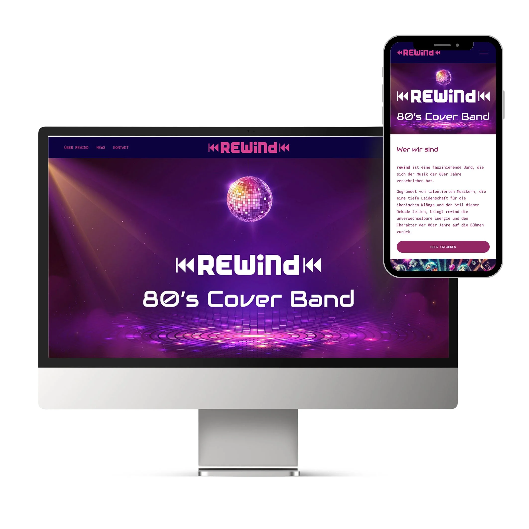 Die neue Website präsentiert rewind lebendig und professionell. Konzerttermine sind prominent platziert, Fans finden schnell aktuelle Infos, und Veranstalter können unkompliziert Kontakt aufnehmen. Durch die Kombination aus starker Bildsprache und einfacher Nutzerführung wirkt die Seite authentisch und ansprechend – ein Auftritt, der die Band stärkt und ihre Sichtbarkeit erhöht.